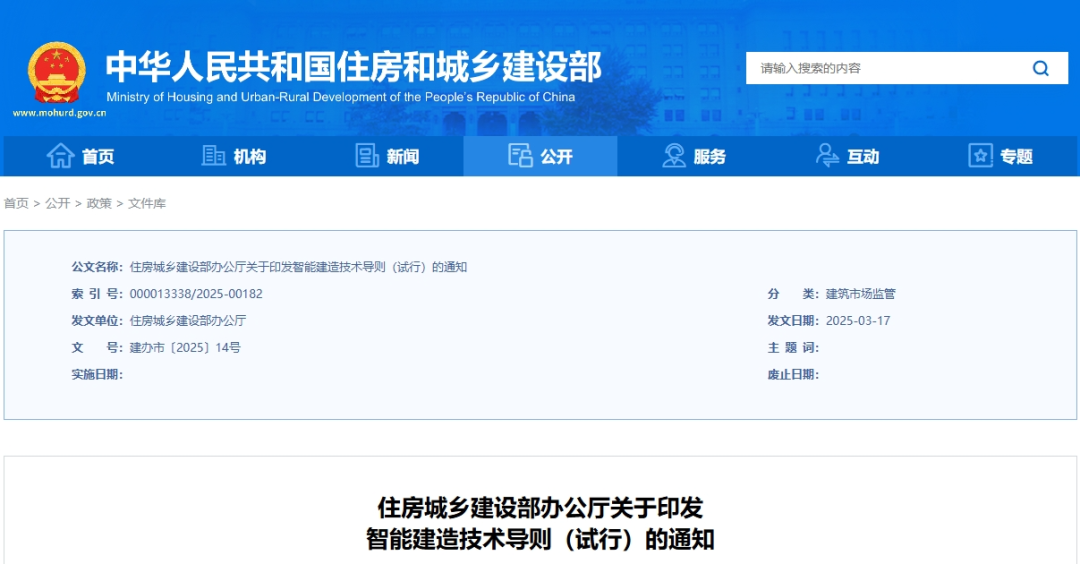 住房城乡建设部办公厅关于印发智能建造技术导则(试行)的通知