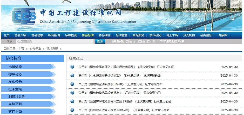 《建筑金属表面防护膜应用技术规程》《建筑结构抗风设计标准》等协会标准征求意见