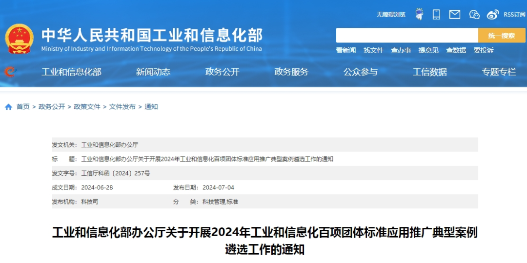 工信部:2024年工业和信息化百项团体标准应用推广典型案例遴选工作启动