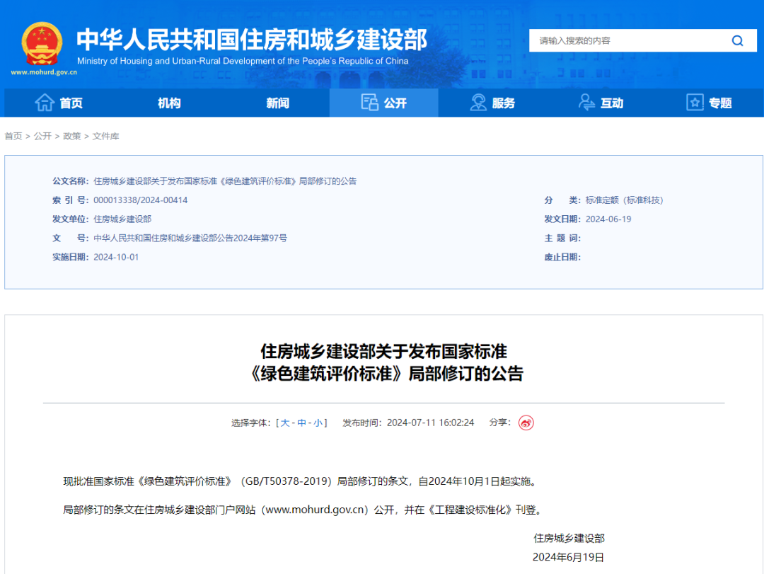 国家标准《绿色建筑评价标准》GB/T 50378-2019(2024年版)获批发布