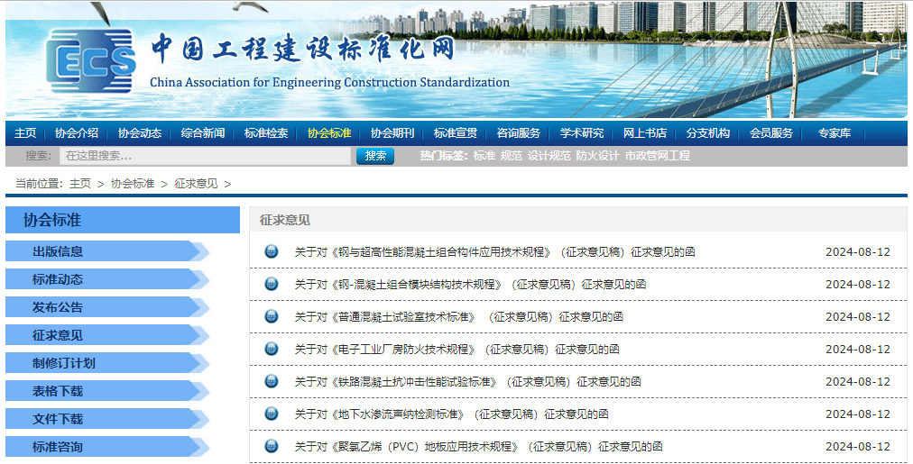《钢与超高性能混凝土组合构件应用技术规程》《地下水渗流声纳检测标准》等7项协会标准征求意见