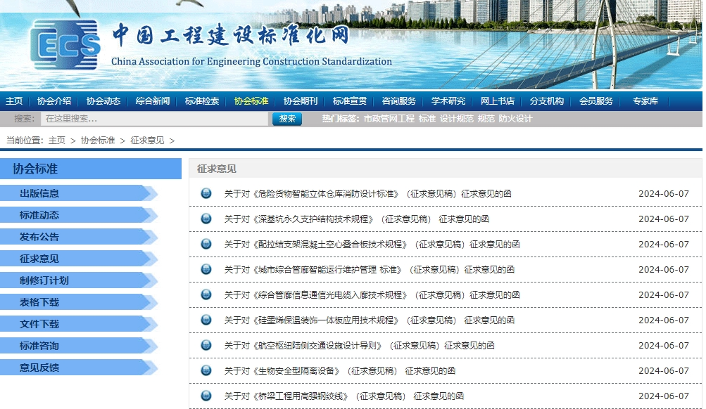 《危险货物智能立体仓库消防设计标准》《桥梁工程用高强钢绞线》等9项协会标准征求意见