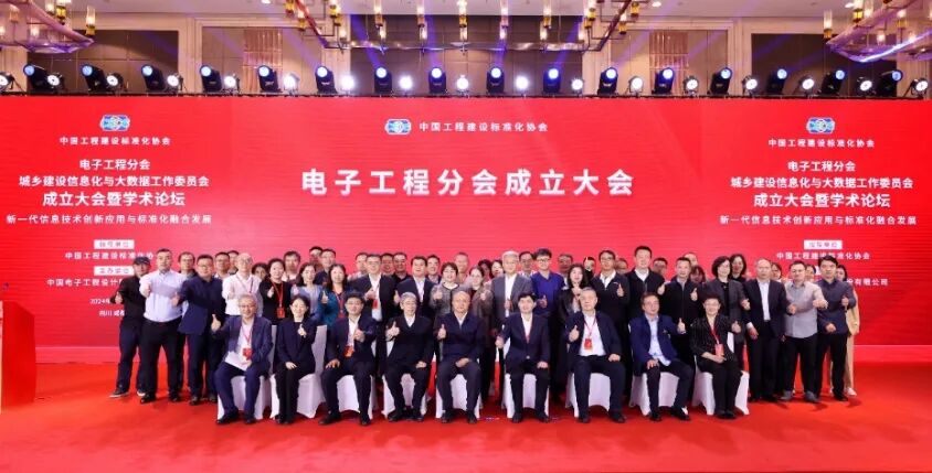 ?2024年11月3日,中国工程建设标准化协会电子工程分会及城乡建设信息化与大数据工作委员会成立大会暨学术论坛在四川成都成功举办。住房和城乡建设部标准定额司一级巡视员王玮;中国工程院院士刘加平;中国工程建设标准化协会驻会副理事长兼秘书长张志新、常务副秘书长张驰;中国建筑东北设计研究院有限公司首席总工程师、全国工程勘察设计大师郭晓岩;北京信息化和工业化融合服务联盟理事长闫同柱;中国电子工程设计院股份有限公司党委书记、董事长、全国工程勘察设计大师娄宇等有关领导和专家,以及来自全国各地的企业、科研院所、高等院校、行业组织的代表100多人现场出席会议。成立大会由中国电子工程设计院股份有限公司首席技术官杨光明主持。