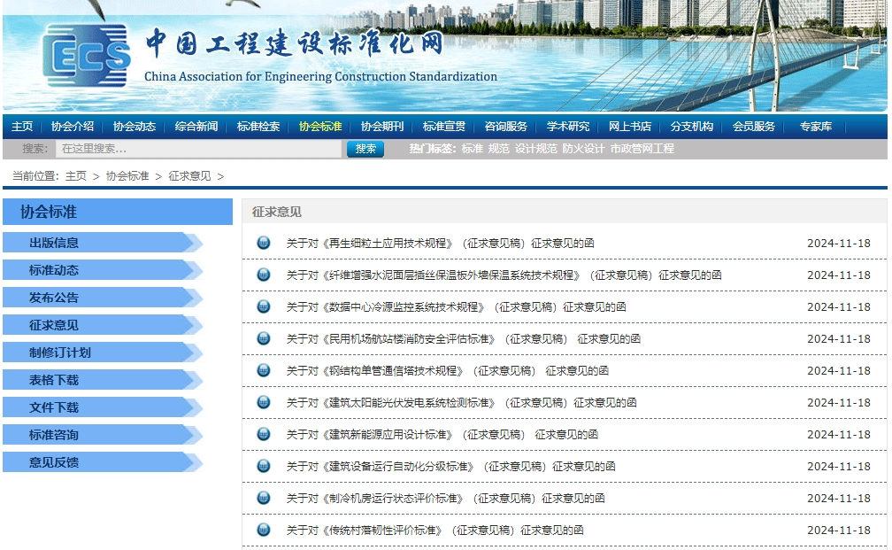 《再生细粒土应用技术规程》《数据中心冷源监控系统技术规程》等协会标准征求意见