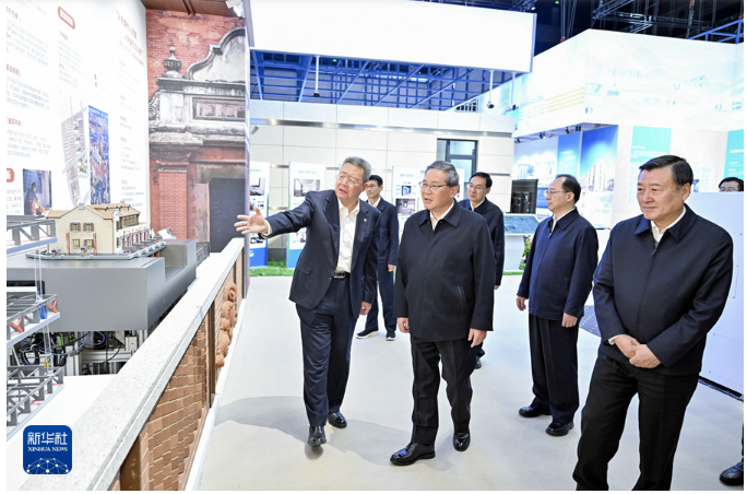 11月18日,中共中央政治局常委、国务院总理李强在北京参观调研中国建筑科技展。新华社记者 殷博古 摄调研中,李强察看“房-车-网”融合绿色智能住宅产品样板房、光伏墙等,听取搬运机器人、空中造楼机等新技术新应用介绍,详细询问房屋设计、建造技术、建设成本、配套服务等情况。李强指出,新一代信息技术、新材料、新能源、装备制造等先进技术的应用正在催生建筑革命、能源革命。要大力推进科技创新,在绿色化、智能化、工业化转型上下更大功夫,全面提升设计、建造和维护水平,促进房地产业和建筑业高质量发展。在观看上海建国东路历史风貌保护及城市更新工程、北京桦皮厂胡同8号“原拆原建”模块化好房子等展示时,李强表示,城市更新是当前城市建设中面临的重要任务,蕴藏着巨大的发展潜力。要把改善民生和扩大内需结合起来,加强各方面协同合作,推进规划创新,完善标准规范,加大好房子建设政策支持力度,抓好城镇老旧小区、城中村和危旧房改造,改善人居环境。在城市更新中要充分听取和尊重群众意见,加强历史文化保护传承,共建和谐城市,共享美好生活。