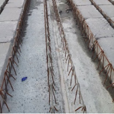 1—预制板;2—预制板内纵向钢筋;3—下弦钢筋;4—附加钢筋《规程》已在江苏、上海、广东、四川、重庆等地的多个工程项目中应用,包括龙信老年公寓、南通政务中心综合停车楼、御澜雅苑、麓园、平安后援管理中心3号楼、颛桥镇闵行新城、九星05-08配套商业等项目,建筑类型涵盖住宅、商业、办公楼等,结构类型包括装配整体式剪力墙、装配整体式框架-剪力墙、预应力装配式混凝土框架等,适用范围广,应用效果良好。部分项目中应用的四边不出筋板如图4所示,采用的密拼式整体接缝如图5所示,采用的不出筋支座如图6所示。