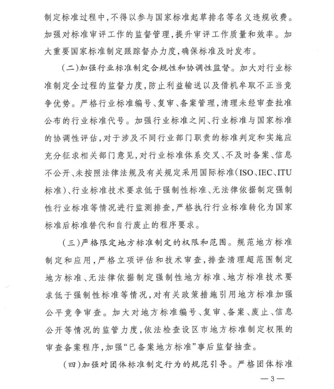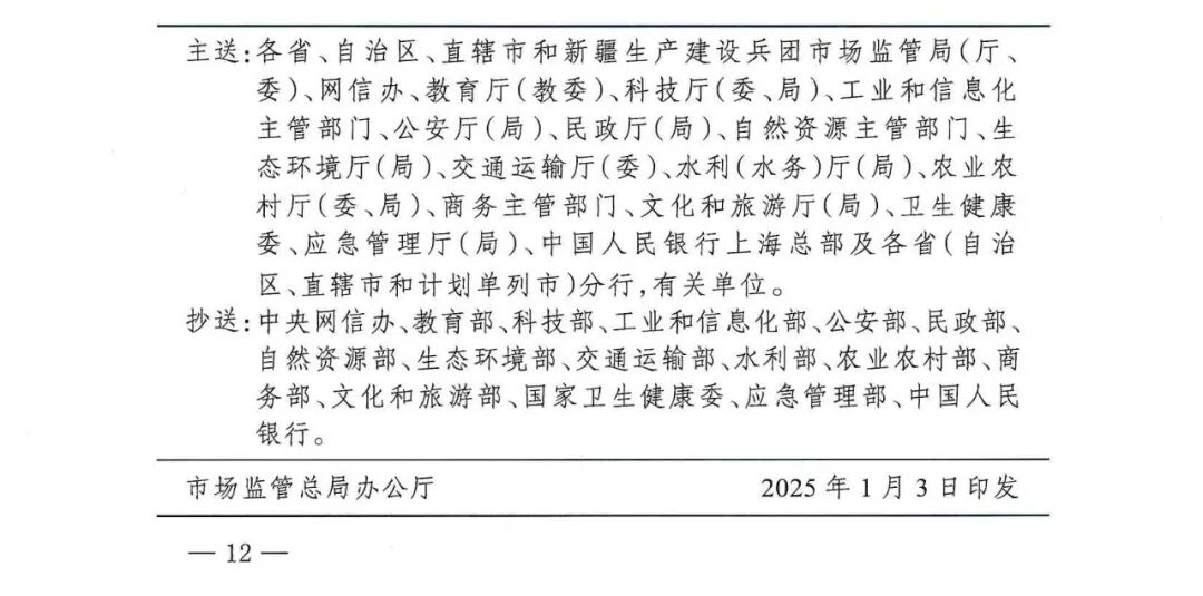 为贯彻落实《国家标准化发展纲要》,加强标准制定与实施的监督工作,更好发挥标准化在推进国家治理体系和治理能力现代化中的基础性、引领性作用,近日,国家市场监督管理总局、中央网信办、教育部、科技部、工业和信息化部等17个部门联合印发了《市场监管总局等部门关于加强标准制定与实施监督工作的指导意见》(国市监标创发〔2025〕2号)。一是加强标准制定的监督。主要包括强化国家标准制定全过程规范化管理,加强行业标准制定合规性和协调性监督,严格限定地方标准制定和权限和范围,加强对团体标准制定行为的规范引导。二是加大标准实施监督力度。主要包括确保强制性标准实施到位,强化推荐性标准的组织实施,规范市场自主制定标准实施行为。三是创新标准制定与实施的监督方法。主要包括健全督导与检查相结合的监督机制,加快构建全国标准实施监测网,完善标准实施信息反馈机制,扎实开展标准实施效果评估,建立标准验证工作监督制度,促进标准实施监督与复审修订联动。四是强化标准制定与实施监督工作责任。主要包括加强国务院标准化行政主管部门的统筹管理,严格落实国务院有关行政主管部门法定监督责任,进一步明确地方标准化行政主管部门和相关部门监督责任,强化社会监督和行业自律。以下为《意见》全文: